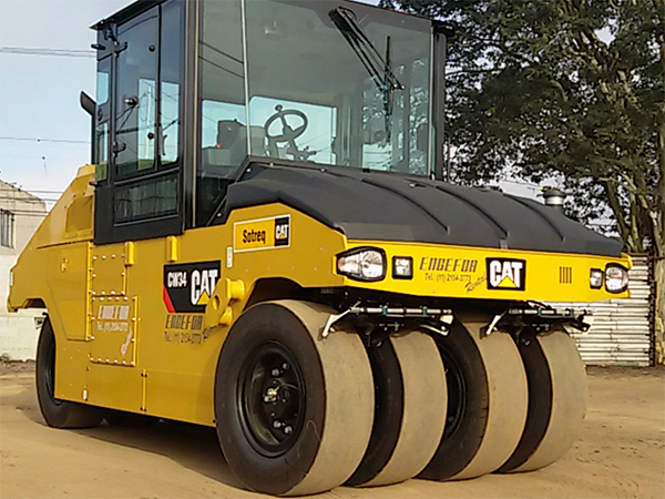 Equipamento específico para compactação de camadas asfálticas, eventualmente utilizado para compactação de material distinto, porém fino, o rolo compactador pneumático utiliza a variação de peso e pressão dos pneus, para aumentar a eficiência e esforço de compactação. A linha de Rolo Compactador CATERPILLAR CW34 chega a pesar no máximo 30 toneladas, é o único modelo capaz de atingir tal peso com lastro total, possui 8 pneus e é uma excelente opção para serviços médios e pesados, o número maior de pneus proporciona uma área maior de rolagem, aumentando a produtividade, por isso garante produtividade e eficiência.