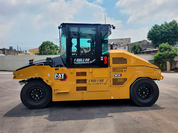Equipamento específico para compactação de camadas asfálticas, eventualmente utilizado para compactação de material distinto, porém fino, o rolo compactador pneumático utiliza a variação de peso e pressão dos pneus, para aumentar a eficiência e esforço de compactação. A linha de Rolo Compactador CATERPILLAR CW34 chega a pesar no máximo 30 toneladas, é o único modelo capaz de atingir tal peso com lastro total, possui 8 pneus e é uma excelente opção para serviços médios e pesados, o número maior de pneus proporciona uma área maior de rolagem, aumentando a produtividade, por isso garante produtividade e eficiência.